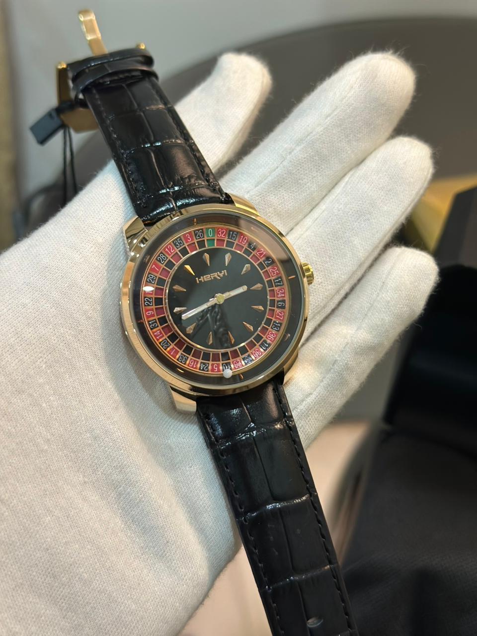 Inspired by Jacob&Co variant, The Casino Roulette Watch is a tribute to classic luxury and old-world charm. Its roulette-style dial reflects the allure of historic gaming halls, where sophistication met chance under warm golden lights. The antique finish adds a rich, aged character, evoking the craftsmanship of a bygone era while maintaining refined precision.