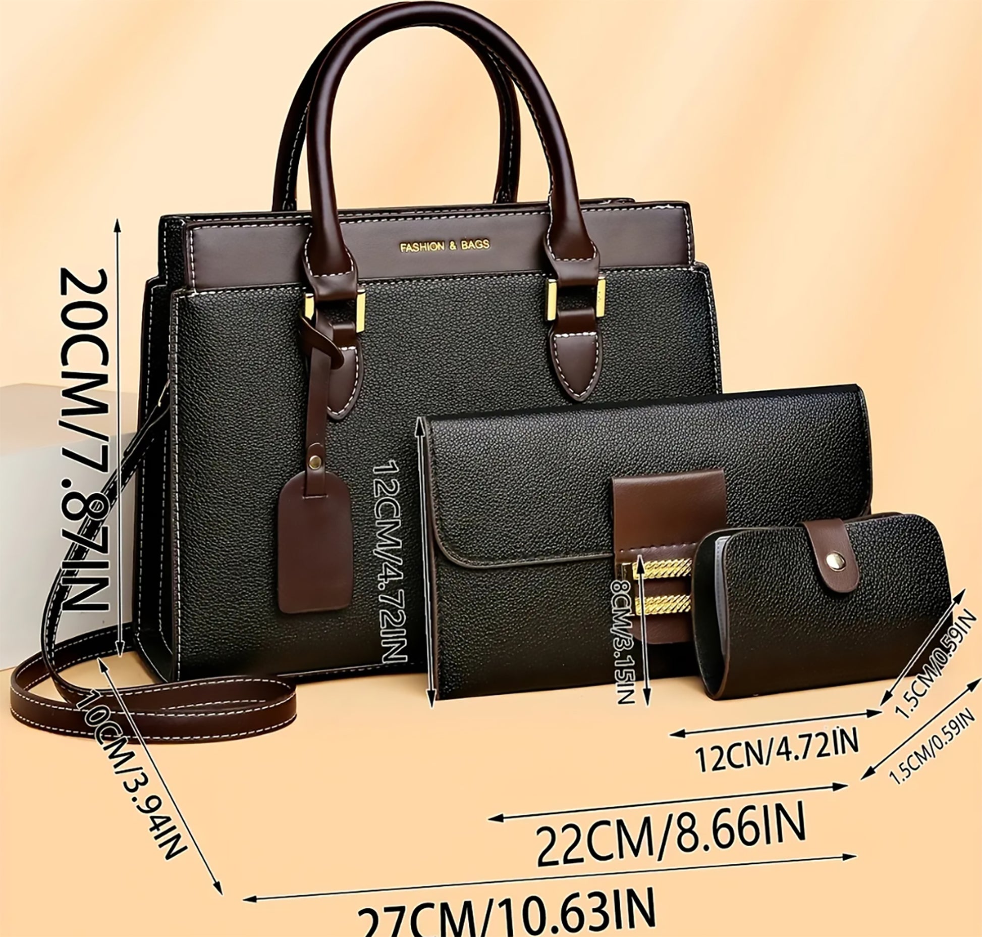 Complete your look with this elegant 3-piece bag set featuring a stylish handbag, a sleek clutch, and a compact wallet. Perfect for work, events, or daily use.
