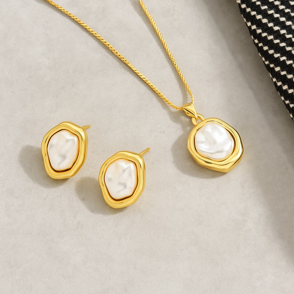 Elegant White & Gold Pendant Set