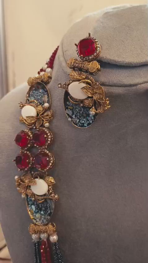 Made with premium materials and attention to detail, the mala set exudes luxury and timeless charm. Its versatile design allows it to pair effortlessly with both traditional attire and contemporary outfits, making it ideal for weddings, festive celebrations, or formal gatherings.