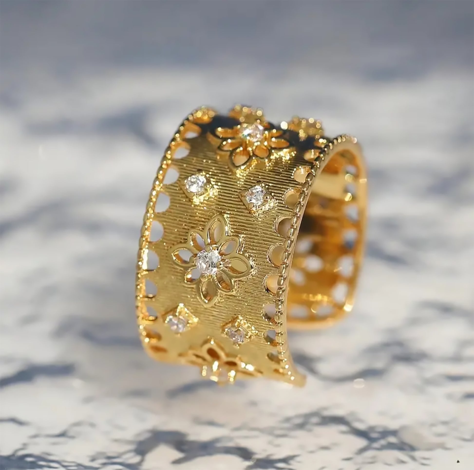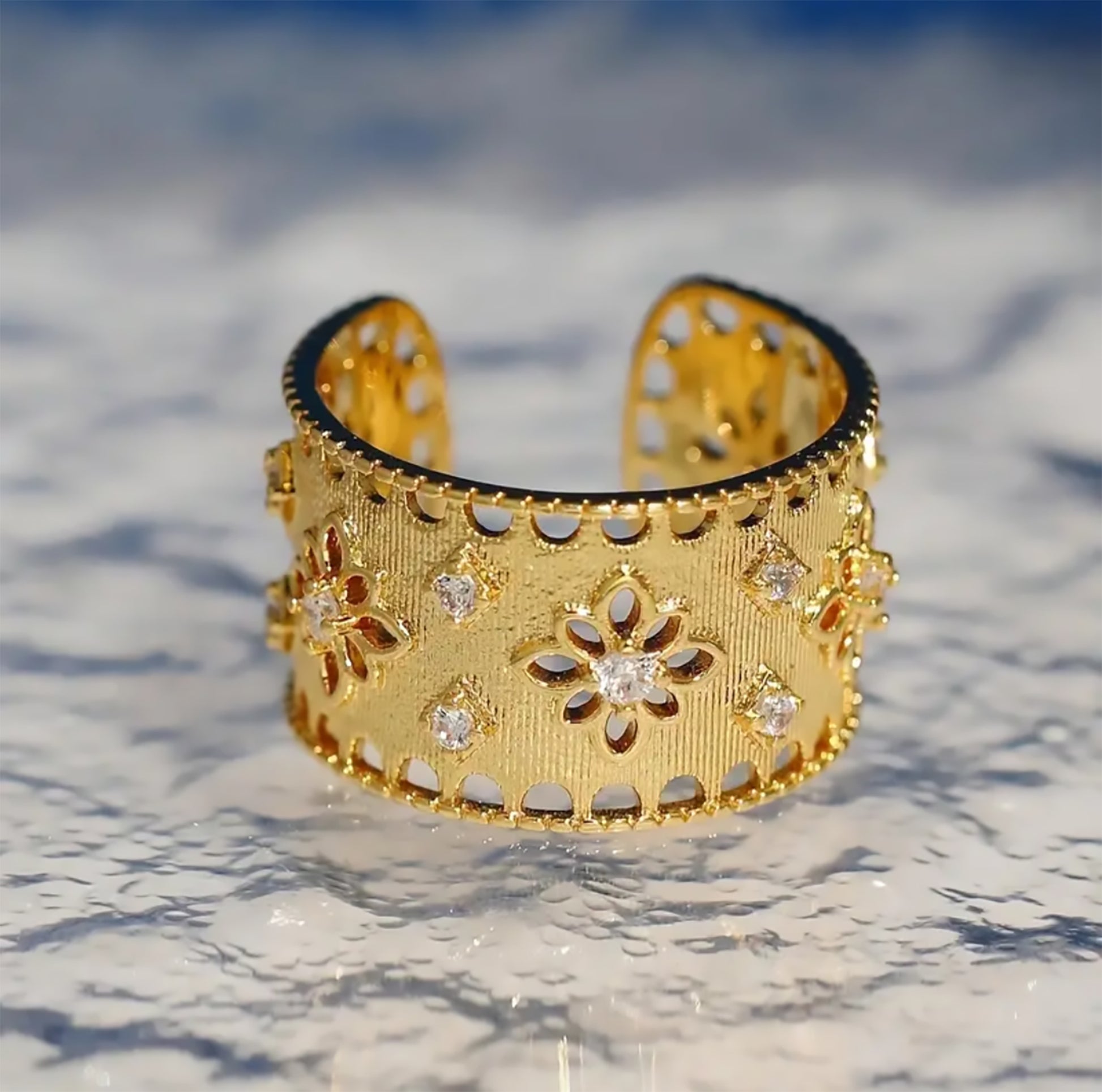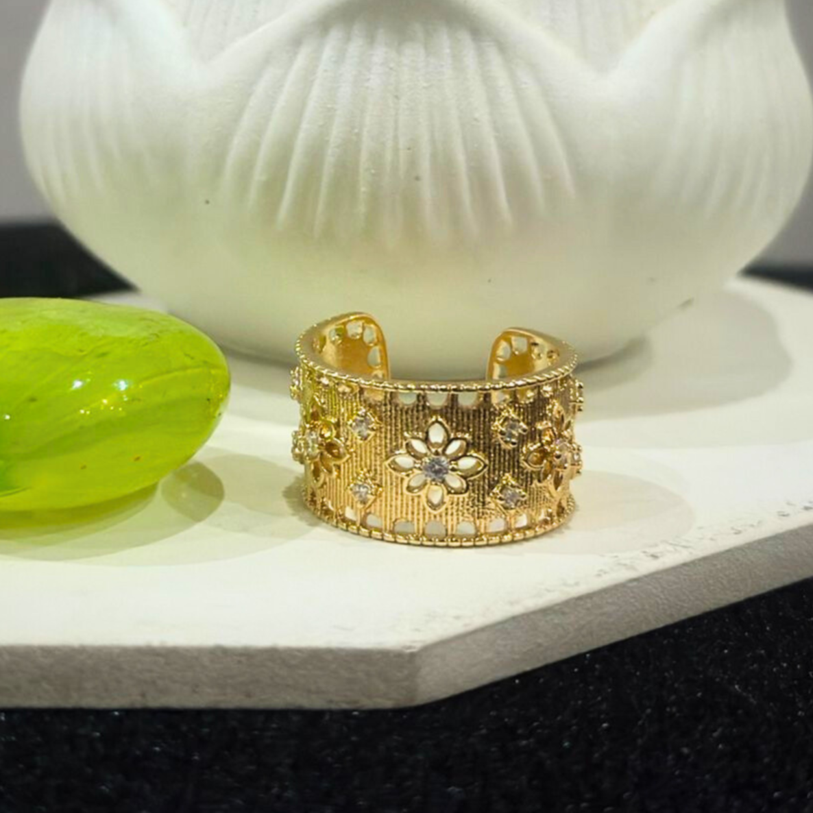Add sparkle and sophistication with the Luxury Openwork Crystal Studded ring. Designed with intricate detailing and shimmering crystals—ideal for special occasions or daily elegance.