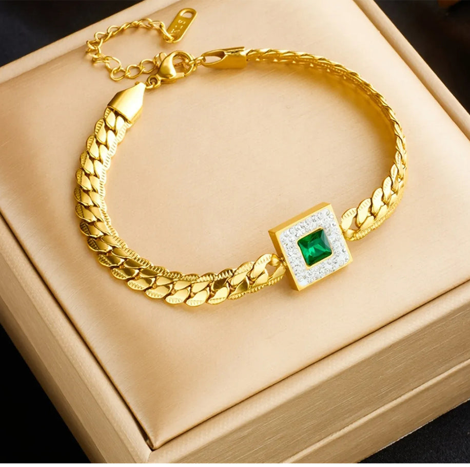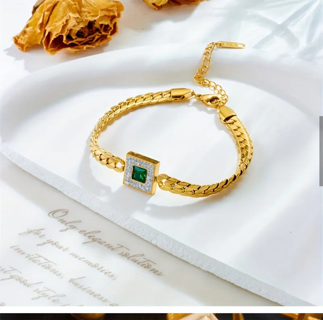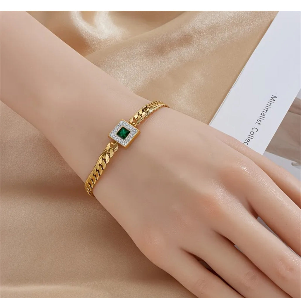 Add a touch of glam with our Stylish Square Zircon Studded Bracelet. Featuring dazzling square-cut zircons, this bracelet blends modern design with timeless beauty.